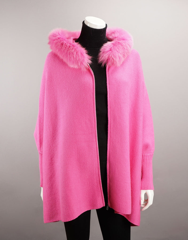 Gloria | Elegant Hooded Cape Coat with Faux Fur Trim